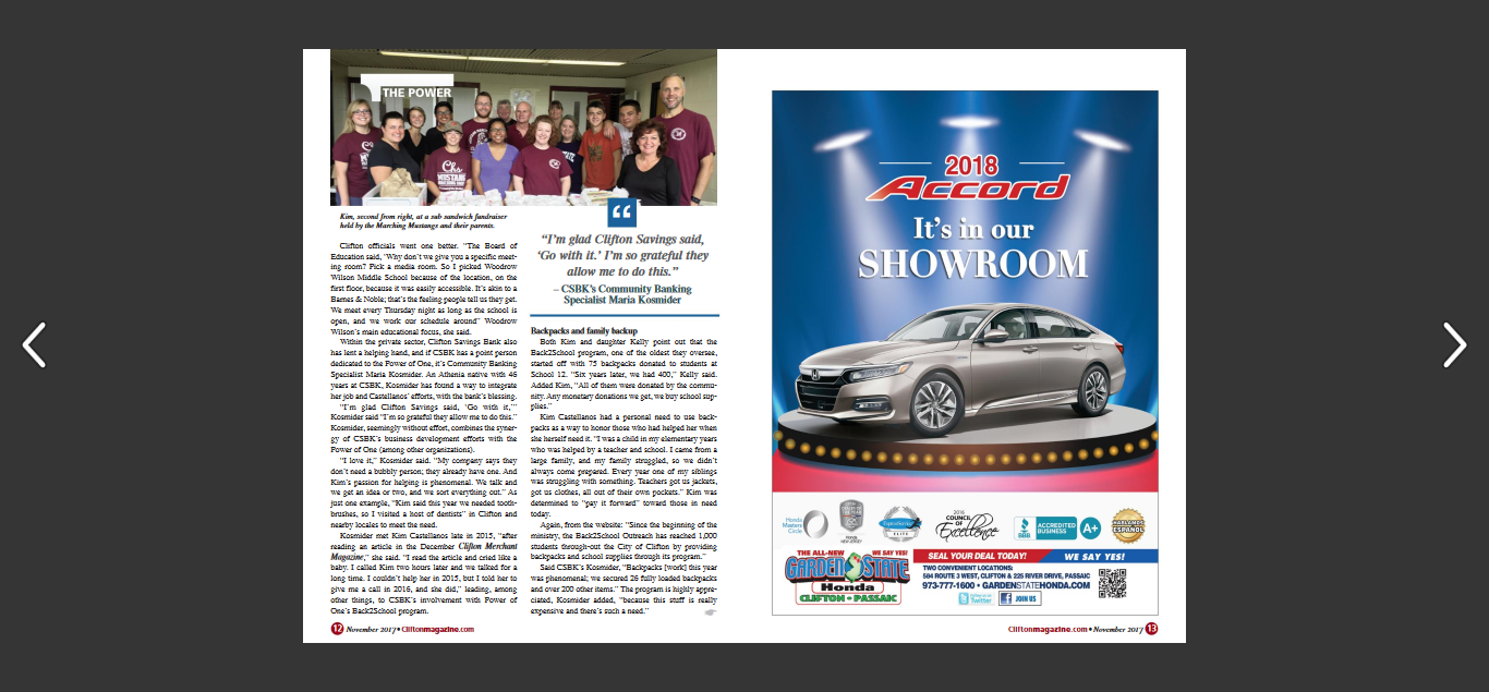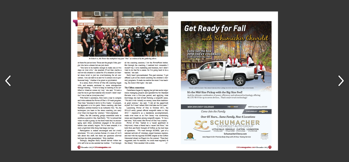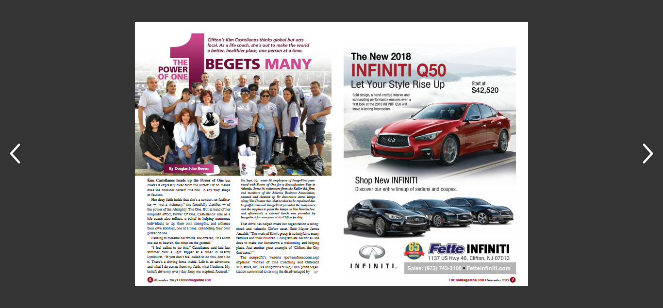 Power of One’s Mission Director, Kim Castellano was featured on the front cover of the highly respected Clifton Magazine in their November issue.